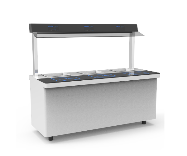 安菲科技的桌面式智能称重台集保温菜盘、电子称、感应器、显示屏等多个设备于一体,实现智能称重计量,无感自动支付,并通过显示菜品的营养成分和消费记录推荐提醒,并为食堂提供管理端进行报表分析、称重设备管理等平台,引导就餐者适量取餐,科学用餐。