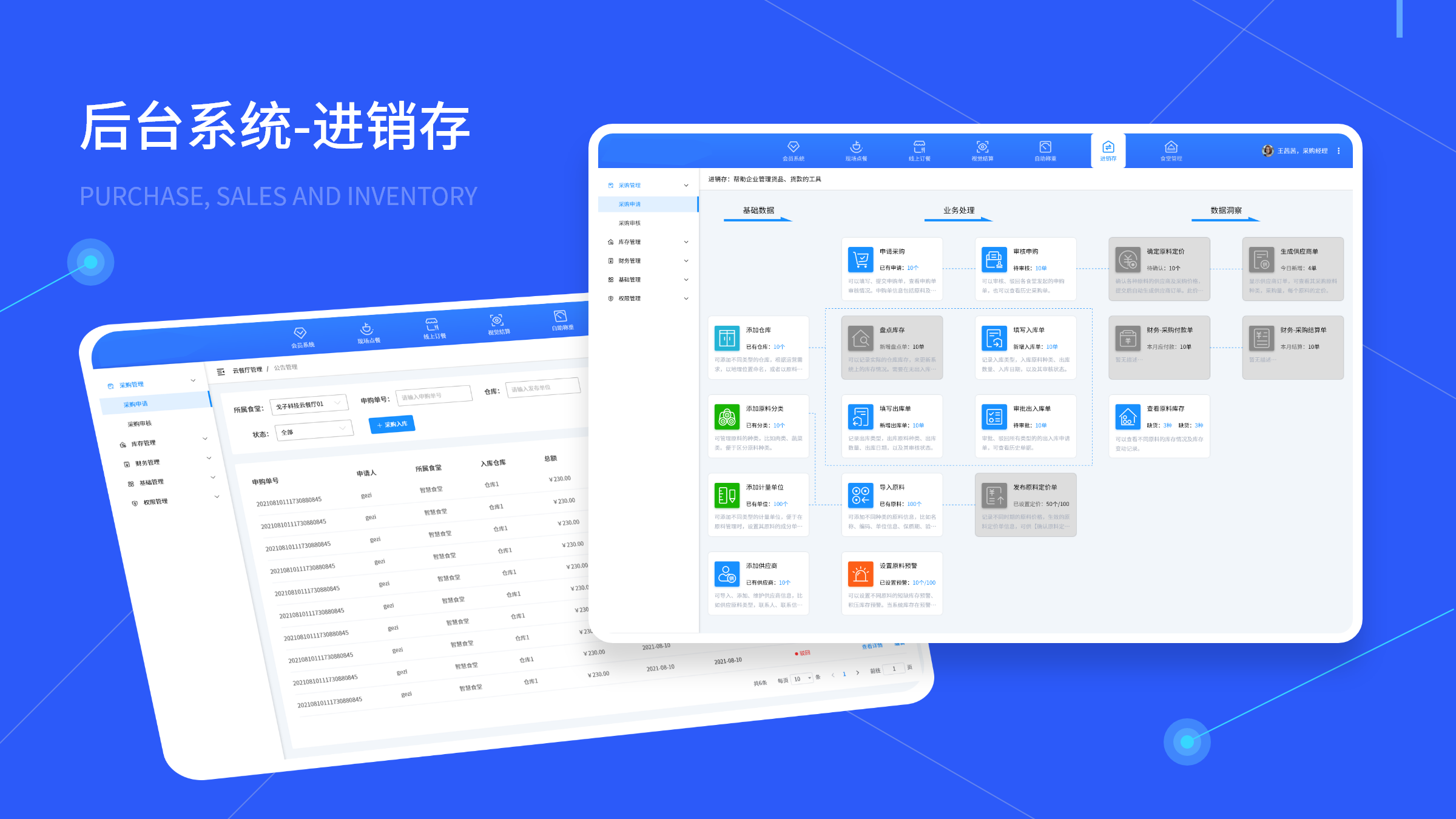 配备采购相关申请、审核、下单等功能模块,可生成进货、成本、库存等清晰报表,优化采购流程,实现一体化数智采购。
